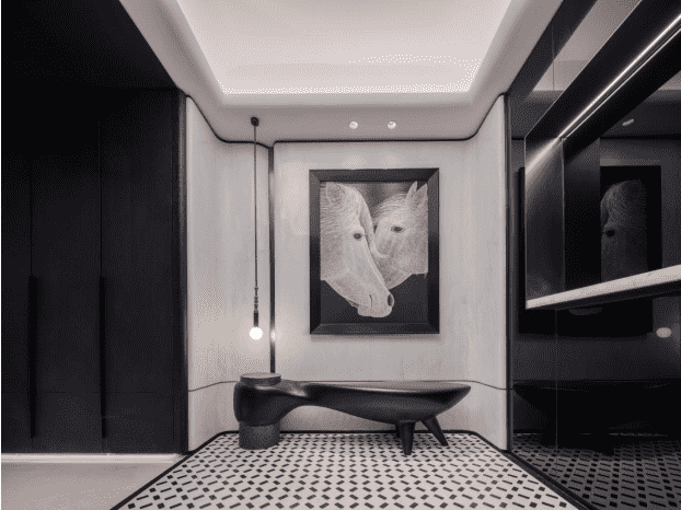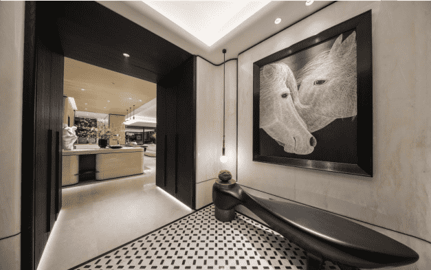玄關(guān)是外界與家庭場所迅速切換的第一站,代表著家的第一儀式感。肇始自中國人詩意棲居理念,無言處道出潛藏于心的人生態(tài)度,為即將面世的典藏畫卷奠定基調(diào)。