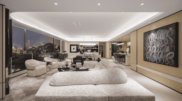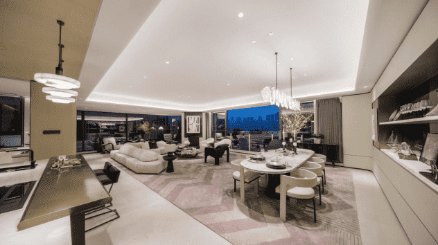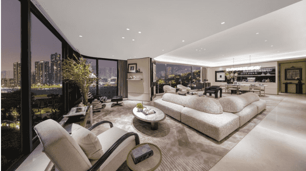 寬敞流動(dòng)的客廳設(shè)計(jì),打通了功能區(qū)之間的阻隔,引入兩面落地窗,賦予視覺上的強(qiáng)烈沖擊,形成城市天際線與室內(nèi)景致無縫對(duì)接,從而解放人的束縛感。