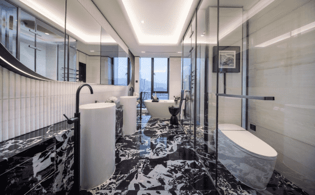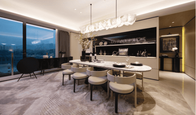 工藝細(xì)節(jié)將設(shè)計(jì)理念完整還原,皮革、木飾面、石材絲滑連接,整個(gè)空間形成一種高度統(tǒng)一的完整體。